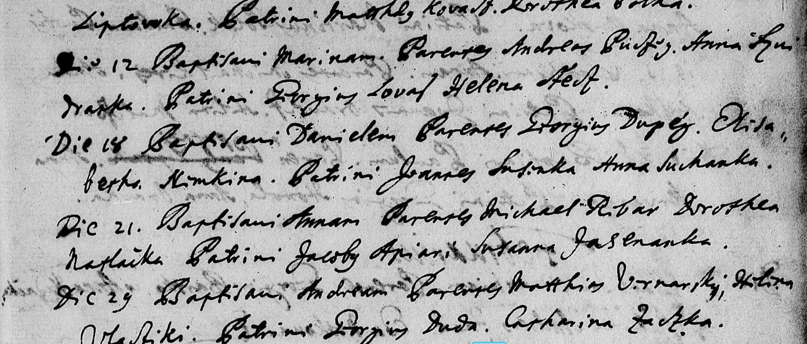 - Téma: krst Danielem alebo Davidem 1674 - vyriešené