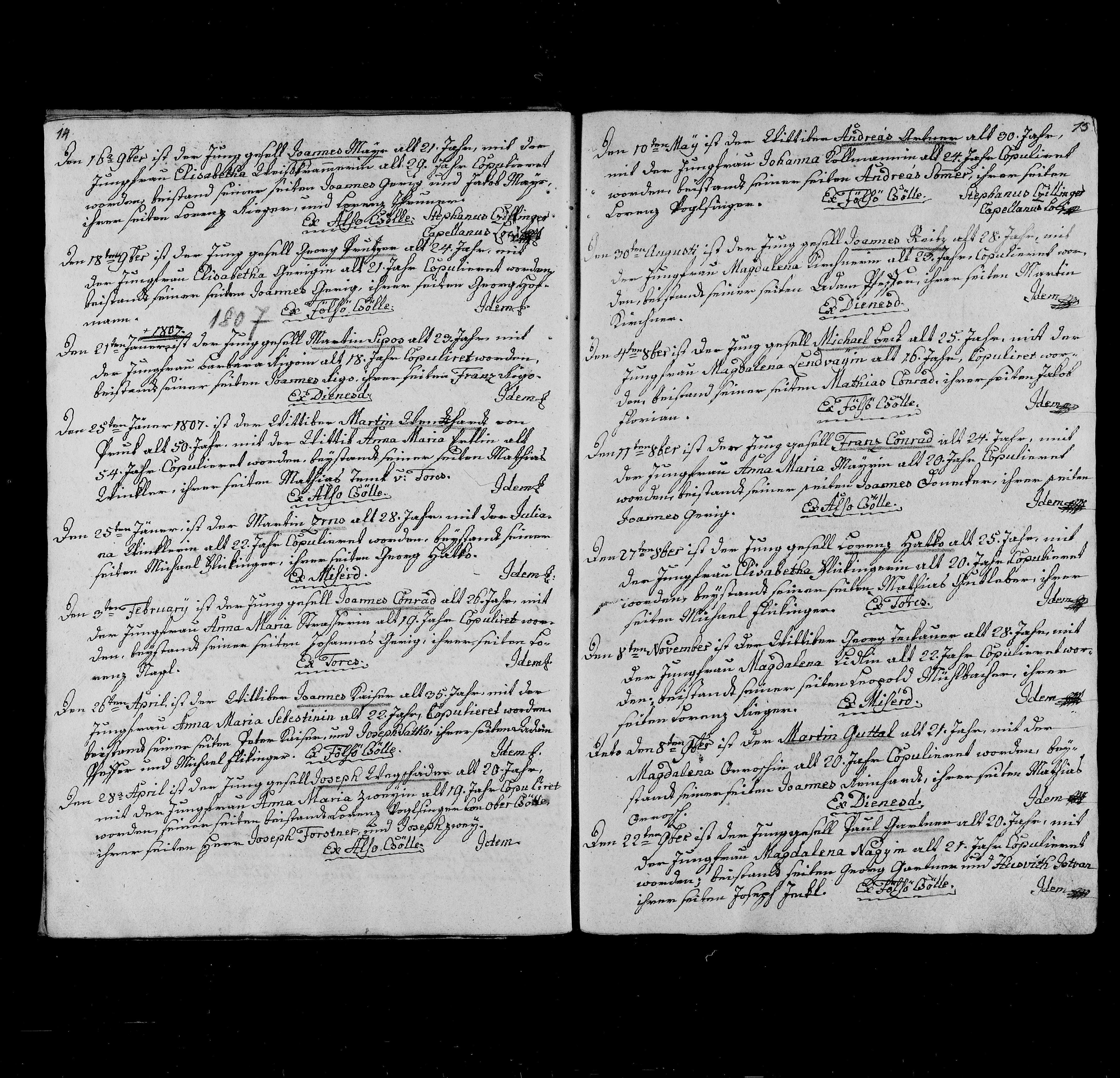Sobáš v obci Dénesd (Dunajská Lužná) mládenec Joannes Máhr, 21 ročný a slečna Elisabeth ?, 29 ročná...