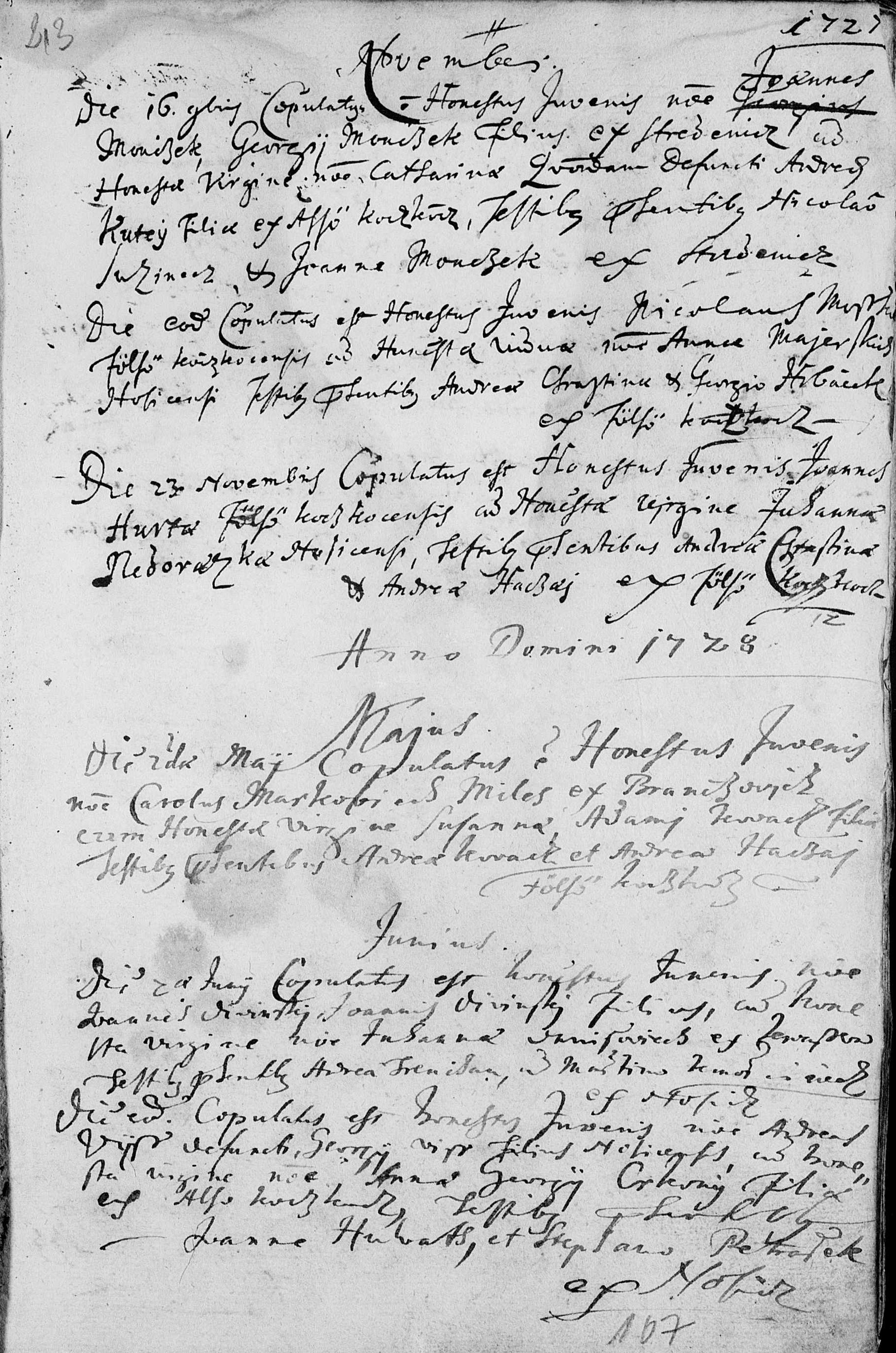 29 ? júna 1728 - Joannes Divinsky, syn Joannesa Divinsky a Johanna Danissoviech z ...csen ?