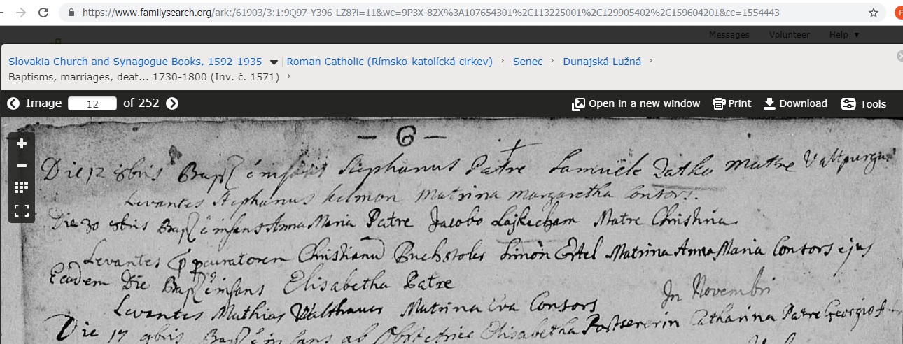 Prosím o pomoc pri preklade zápisu narodenia Štefana Satko. Mne sa podarilo určiť 12. mesiac ? 1735 sa narodil Štefan Satko, otec Samuel Satko matka Vatt...... krsný Štefan Kolman krsná Margaréta Ďakujem.