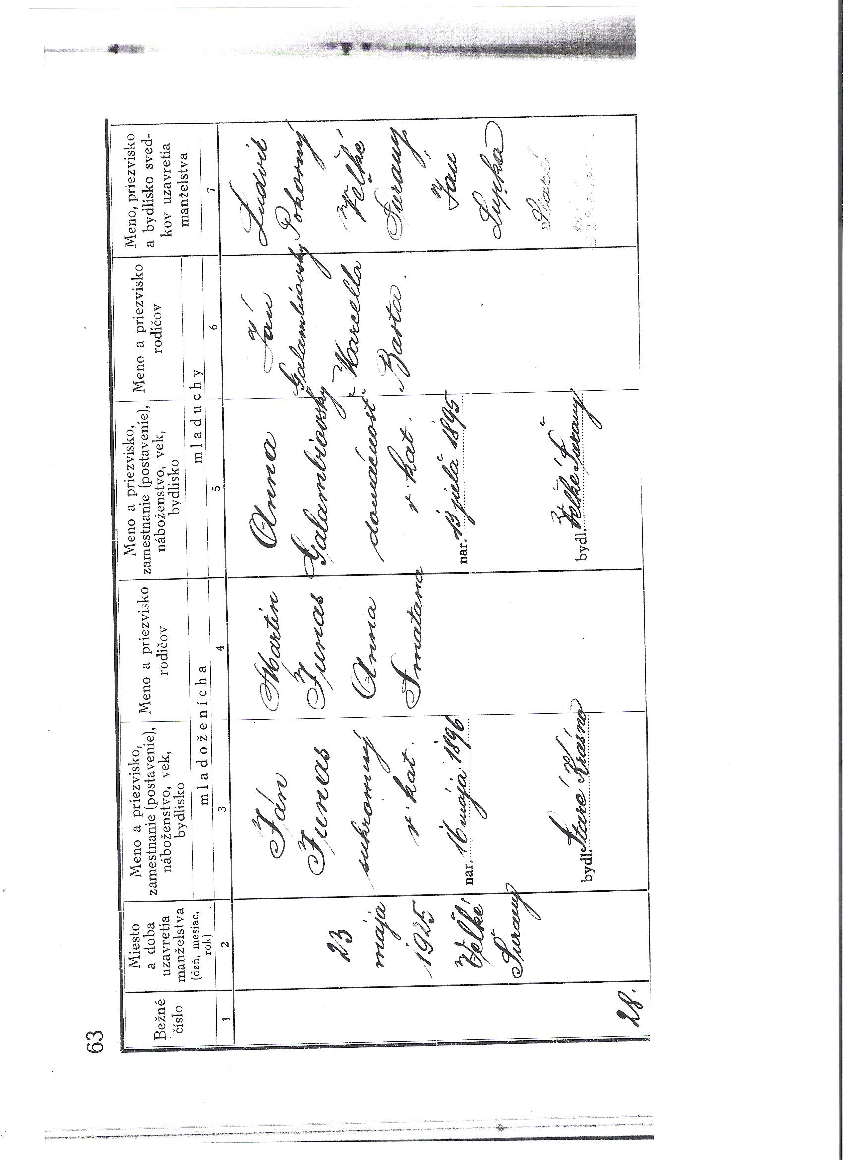 V sobášnom zázname zo dňa 23.mája 1925, ktorý sa konal v Šuranoch, sú ako rodičia Anny Galambiovskej , nar. 13.júla 1895, uvedení Ján Galambiovský a Marcela Barta: