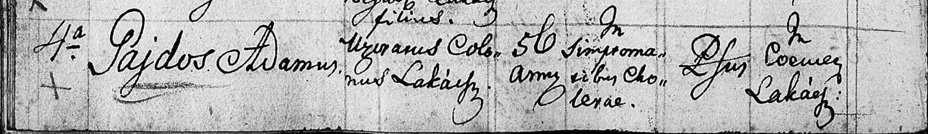 Taktiež poprosím o rozlúštenie slova v zázname knihy úmrtí z r.1841, konkrétne prvé slovo v druhej kolonke za menom zosnulého (Gajdoš Adamus), to pokračovanie je asi Colonus Lakacs.
