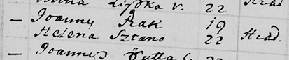 Sobášna matrika z roku 1820: Ján Rak (19) - Helena Sztano (22) - z toho mi vychádza, že sa narodil 1801