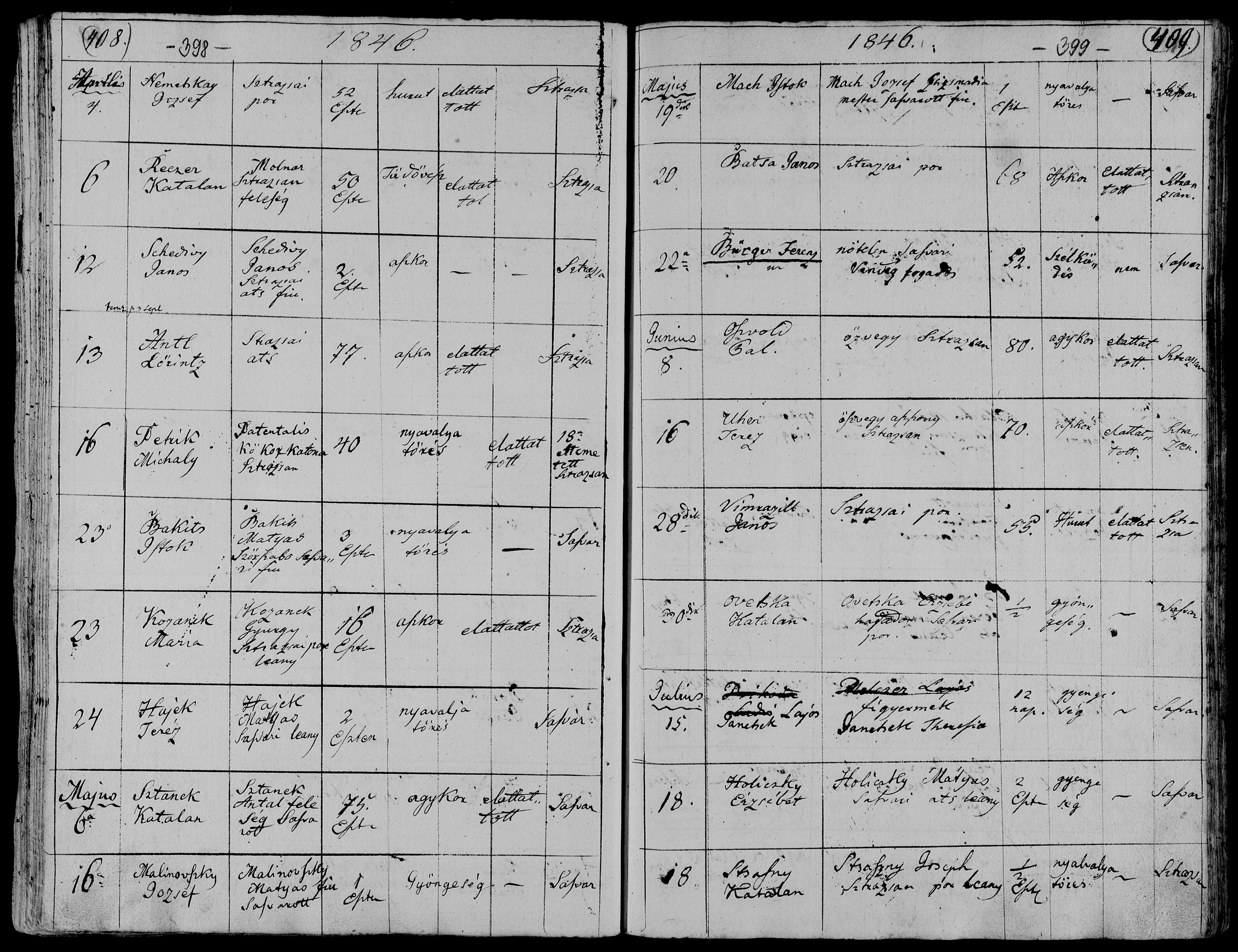 6.5.1846 Sztanek Katalan Kateřina? manželka Sztanek Antal - Antonius pak je povolání?, to nevím a 75 let
