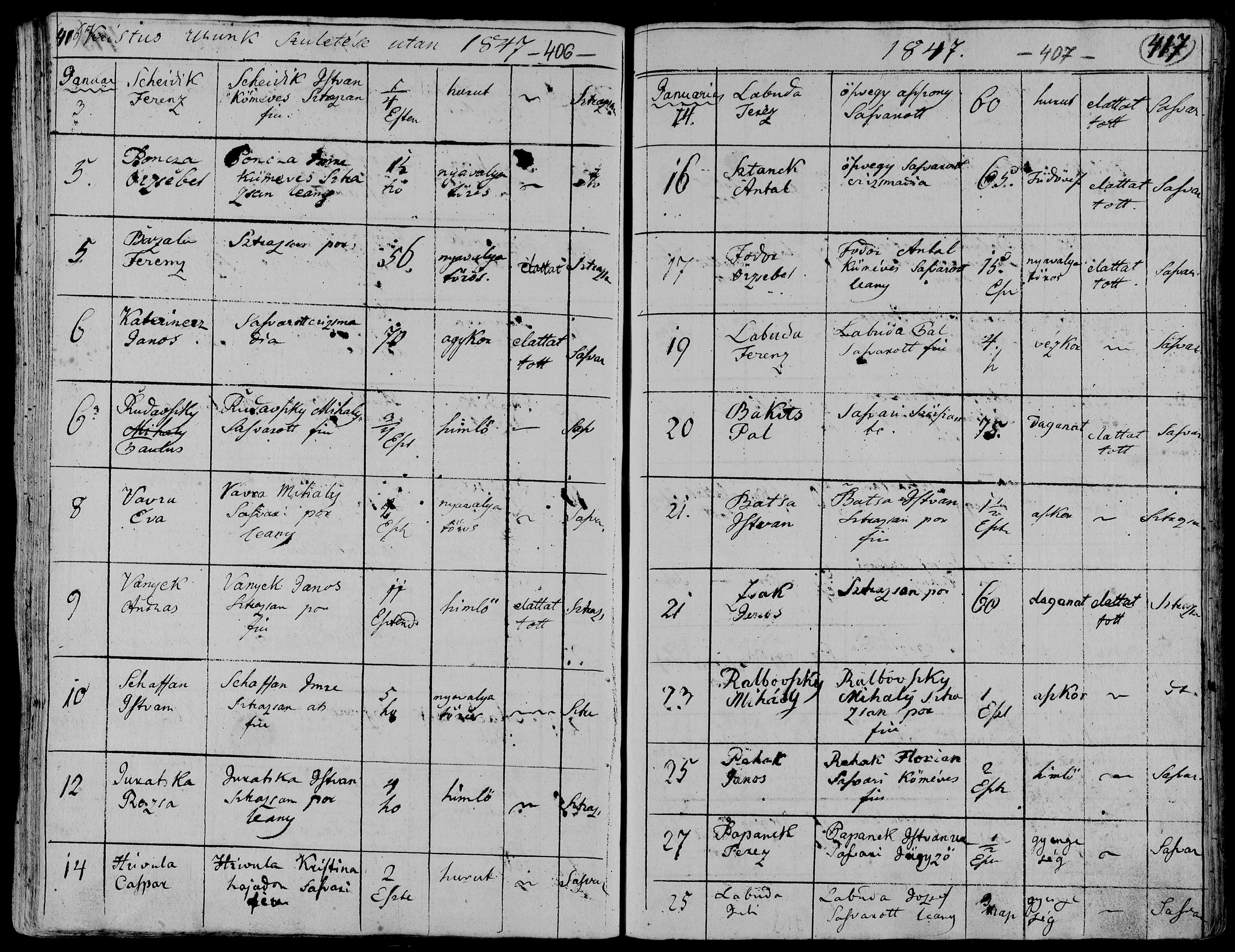 druhá latinský zápis je 16.1.1847 Sztanek Antal 65 let ..nevím povolání. Mě připadá že to byli manželé. Ale neumím to dobře přečíst