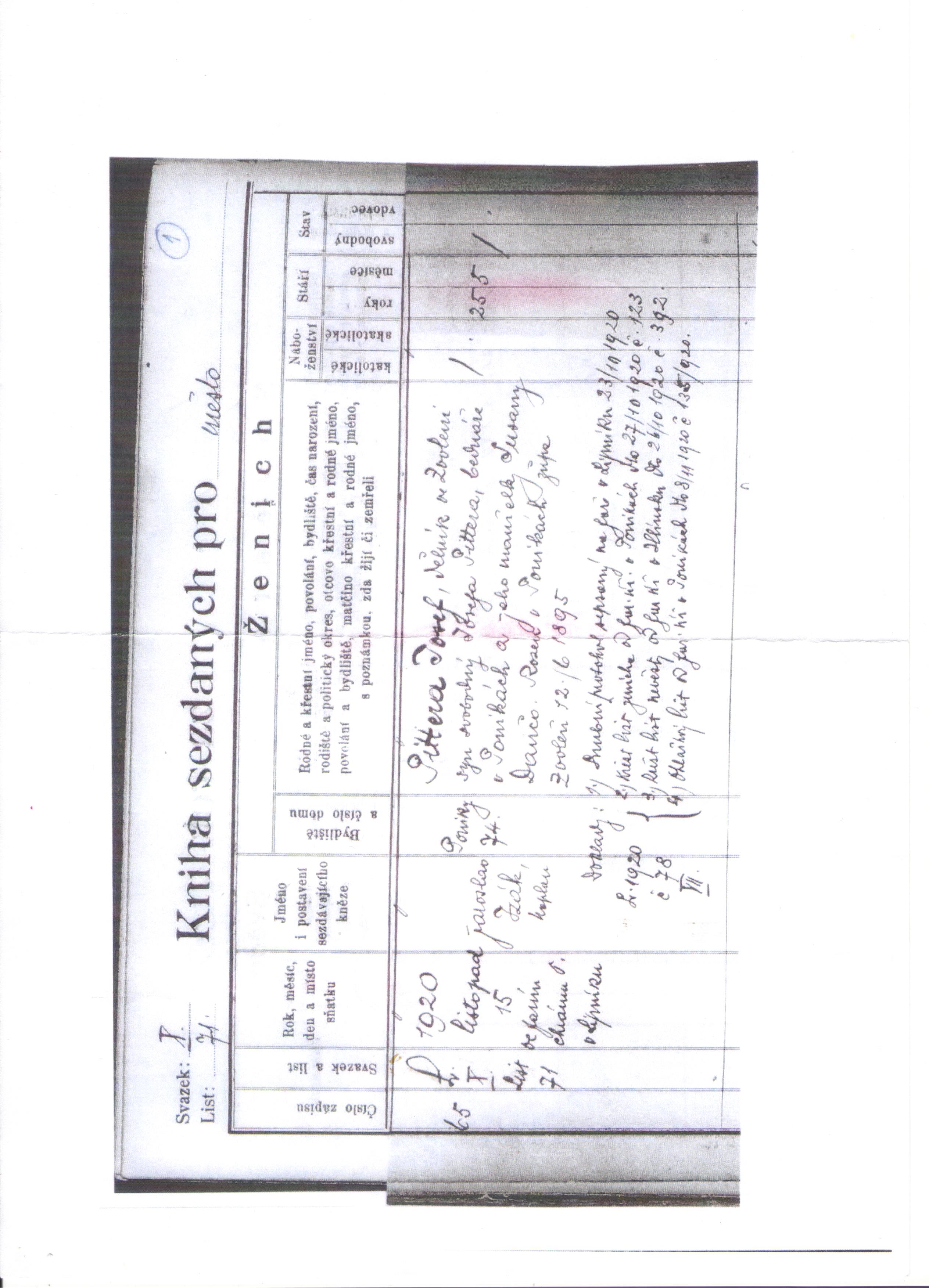 Je to on, v originále je Pittera a je tam doložený lístok z Lipníka nad Bečvou o odpadlíctve od RK viery a vstupe do Čsl. národní církve v r. 1927.