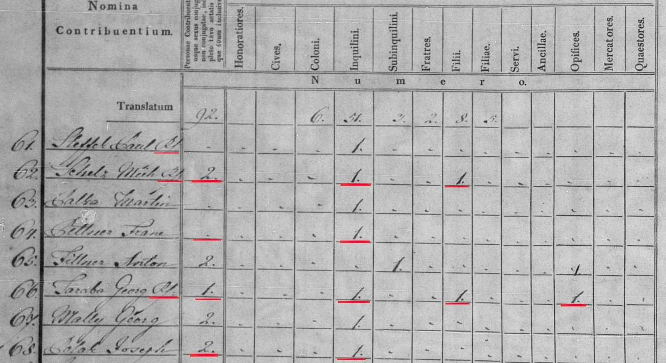 Osoba 64 - tu vznikol nešťastný stav. Daný človek bol želiarom, no zároveň predpokladám, že mal vyše 60 rokov. Tým pádom nemohol byť zarátaný do 2. kolónky, kde sú uvedené osoby od 18 do 60 rokov. Do 3. kolónky mali potom uviesť len počet želiarov vo veku od 18 do 60 rokov, lenže v takom prípade by daňové úrady nevedeli, ako danú rodinu zdaniť.
