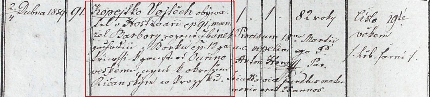 Kniha smrti Hostivař 1859 - jednotlivá slova - VYRIESENE