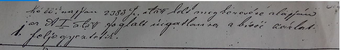Na základe vyžiadania pod por. číslom 2383 zo 20-teho ??? mesiaca a ??roku zabepečenej nehnuteľnosti pod číslom A-1 bol zaznamenaný súdny zákaz manipulácie s nehnuteľnosťou.