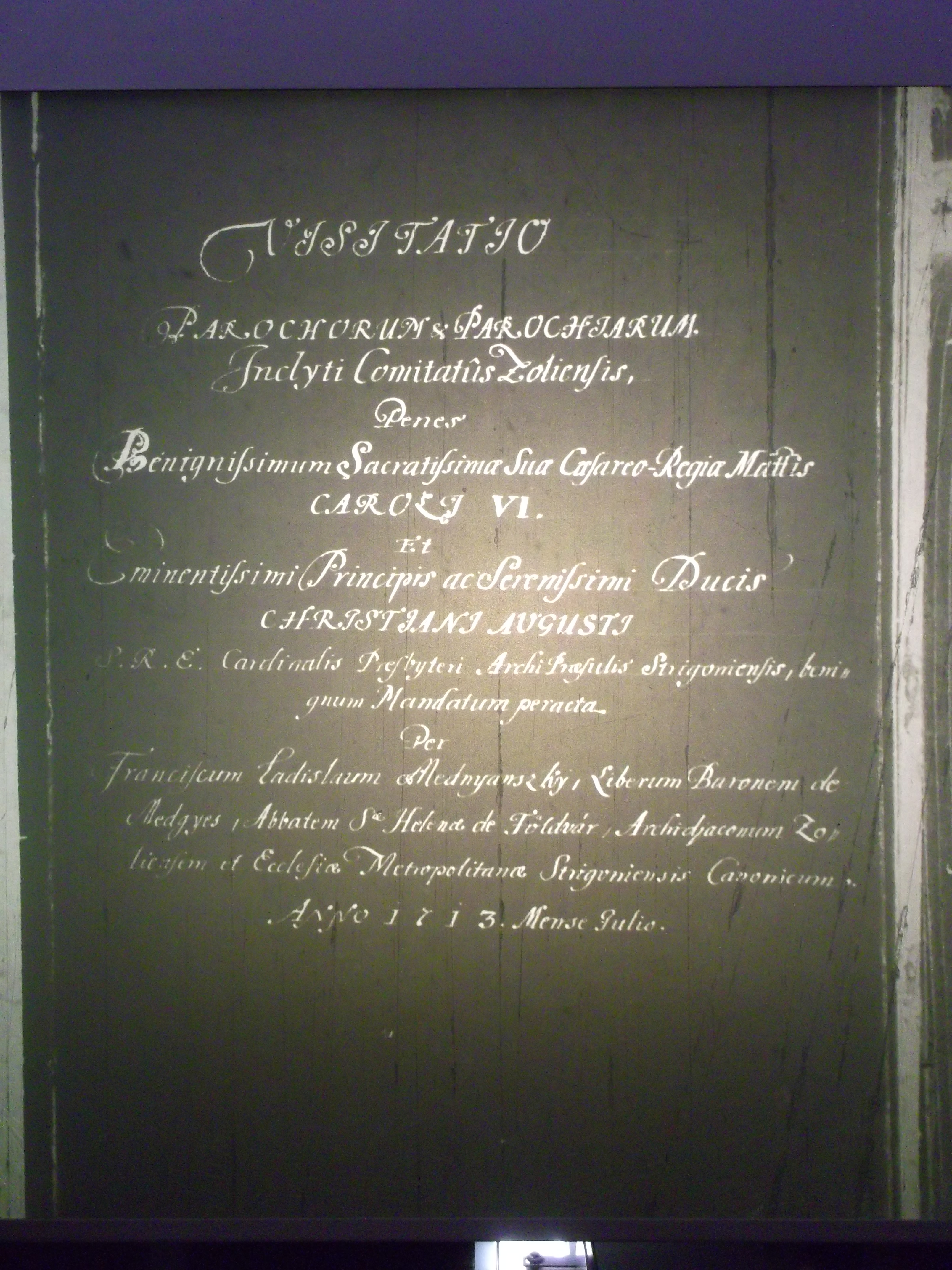 V prílohe je obrazok prvej strany kanonickej vizitacie kardinala Christiana Augustiho [Saského], ktorý dal prikaz na jej vykonanie.
