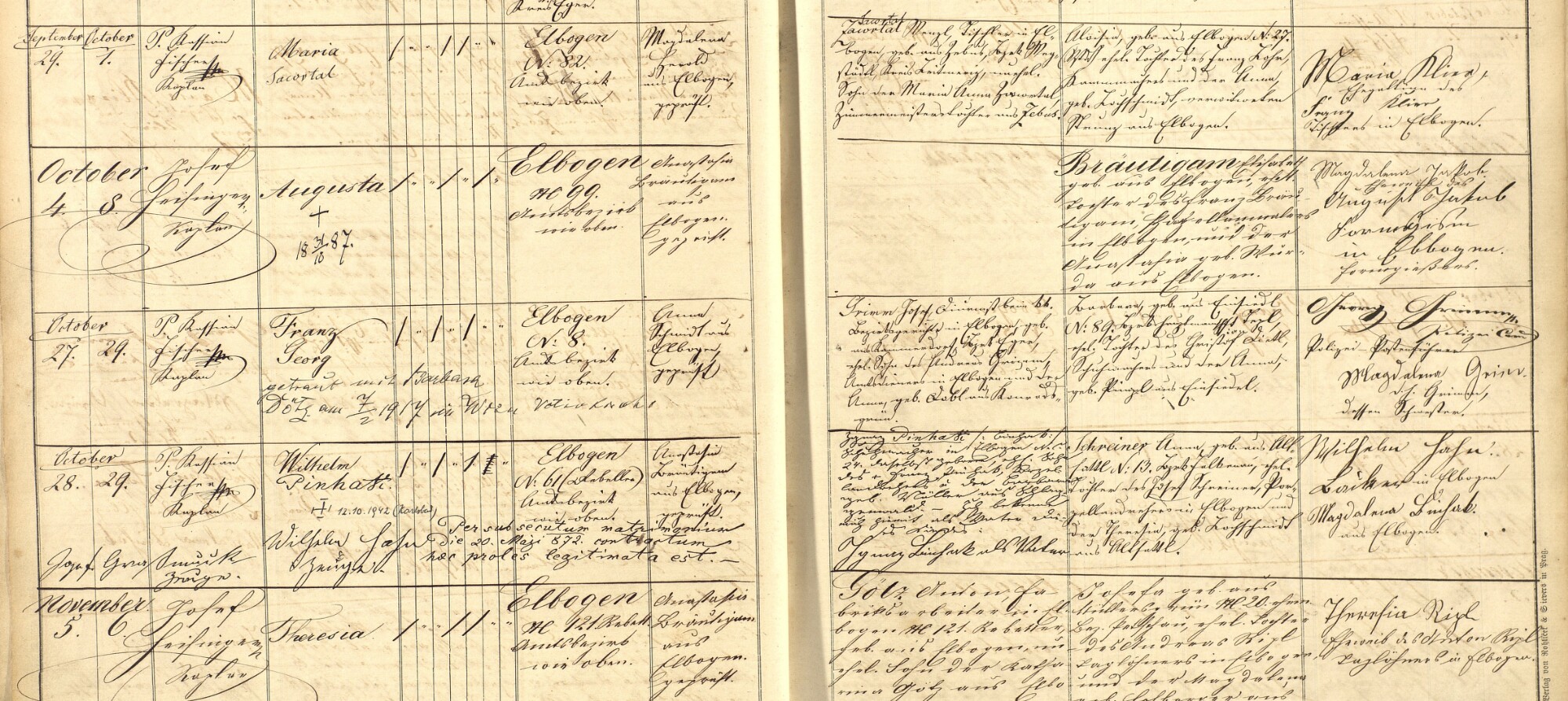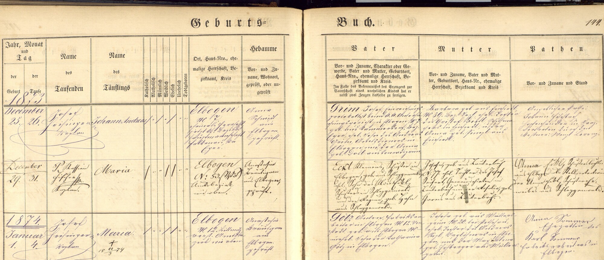 Grim Josef ... protokolis? beim K. k. ... Elbogen ... geb. ... Rammendorf? ... Andreas Grim ... Elbogen, und das ... geb. Anna? Dobl aus Konradsgrünn?