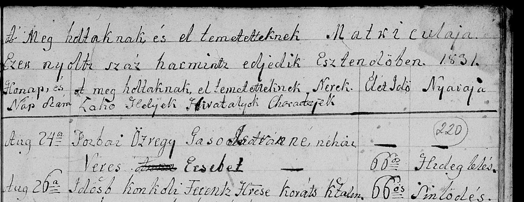 Franc. zomrel 26.aug.1831 66 rocny ( pricinu som nerozlustil)