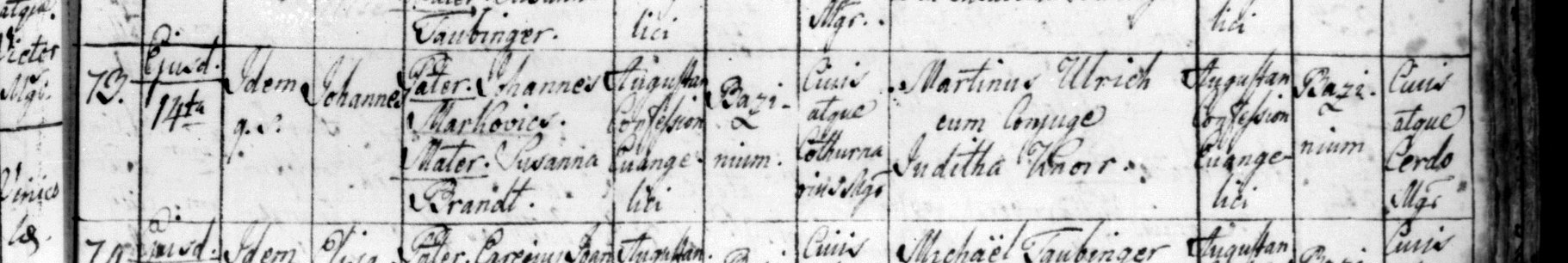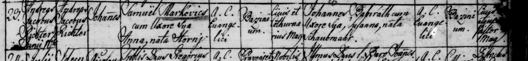 Ten Johanes Markovits 1828 bude asi preklep v indexacii, ma tam byt Machovits. Je zaznam c. 31 zo 4. juna 1829 https://www.familysearch.org/ark:/61903 ... cc=1554443 kde sa pise ze syn Johanesa Markovitsa a Elis Mertel zomrel na predcasny porod. Trochu zvlastne mi to prislo, tak som lepsie pozrel na tie pismenka a je to v oboch zaznamoch viac Machovits ako Markovic. A naozaj, pri hladani vseobecne na meno Machovits v pezinku vyhlada vela odkazov na Machovits v kombinacii s Elis Mertel. Cize Johanes Markovits 1828 https://www.familysearch.org/ark:/61903/1:1:V1Z7-68N nebude moj predok.