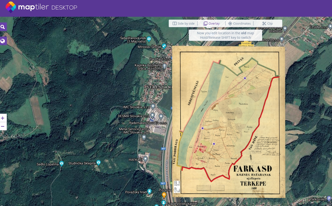 Vyskúšal som to na katastrálnej mape Vrtižera z roku 1900, ktorú som si následne uložil a exportoval do mapovej aplikácie v mobile a viem tak v teréne s pár metrov určiť konkrétne miesto zo starej mapy.