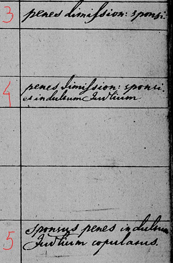 5. sponsus penes indultum Judlium copulatus. Ženích k sobášu predložil súdne povolenie.