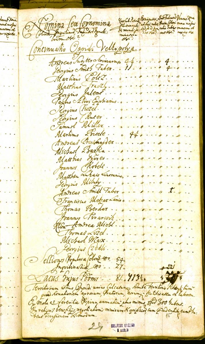 Posledné, čo mám, je zoznam platitelov dani Velkeho Pola z roku 1715.