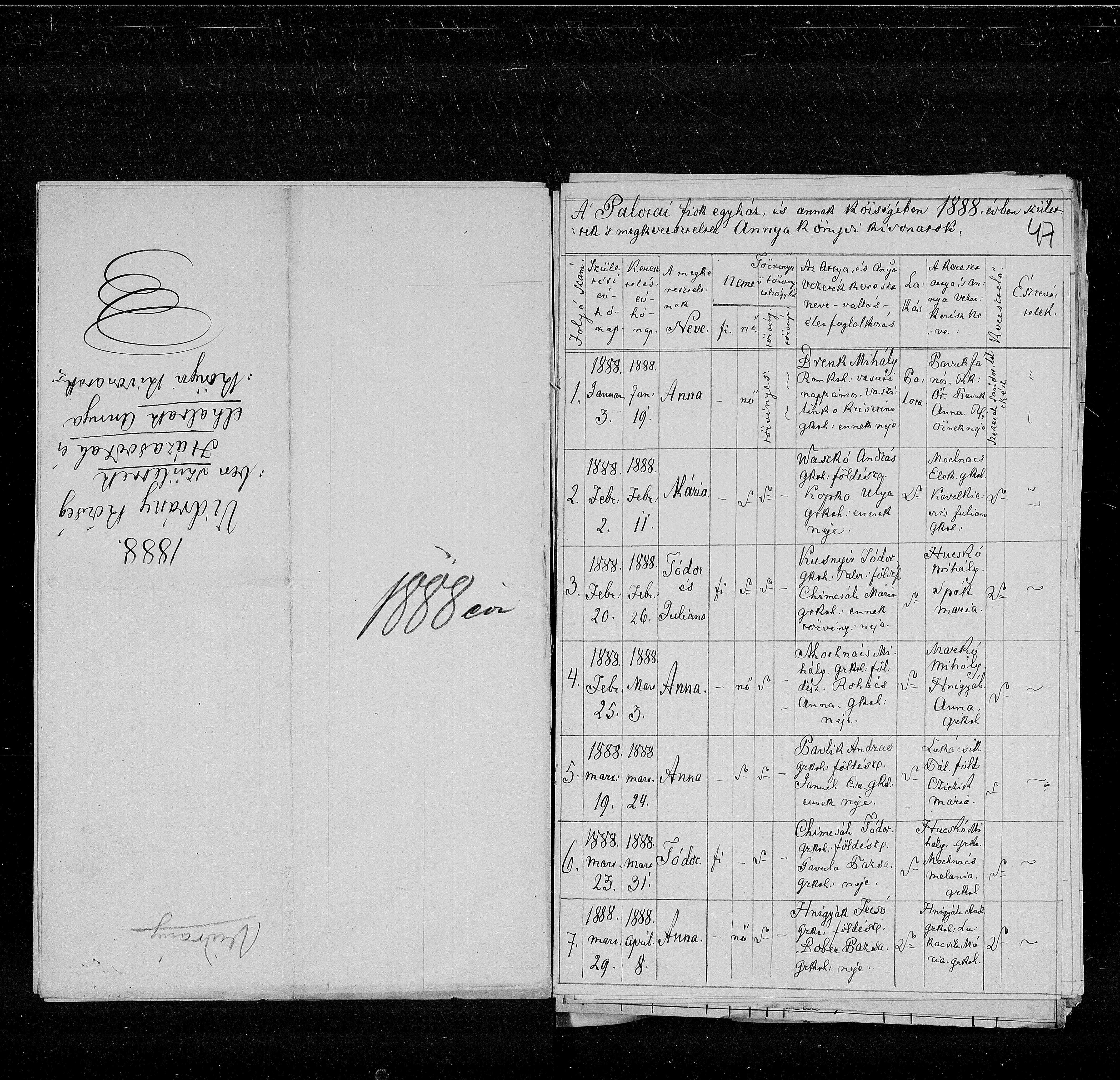 ide o krst Anny Mochnáčovej. Rodičmi boli Michal Mochnáč a Anna Roháčová, gréckokatolíci, roľníci. Dieťa sa narodilo 25.02.1888 a pokrstené bolo 30.03.1888 v Palote.
