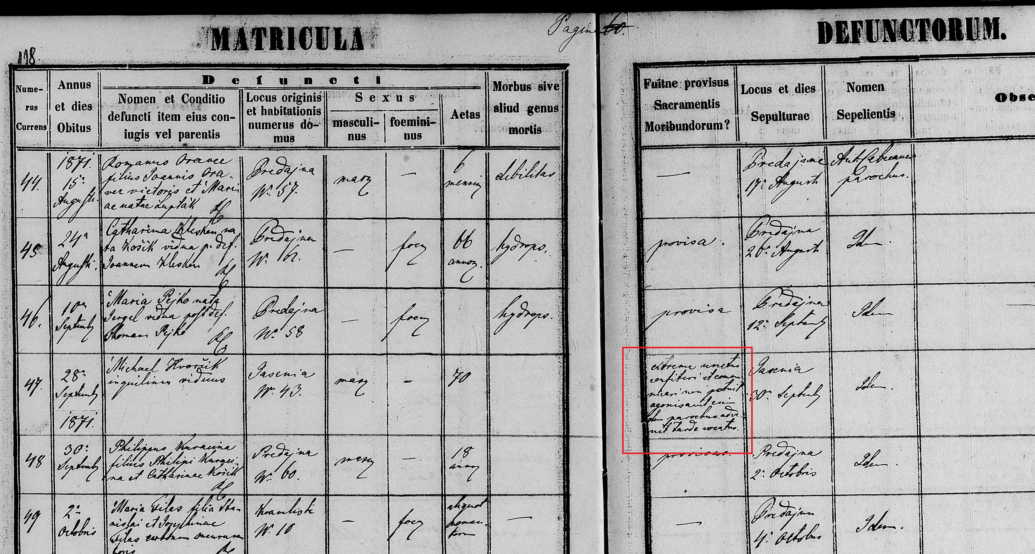 Veľmi pekne by som prosila o preklad v červenom rámiku v kolonke pomazanie chorých- ubúdali mu tak sily, že mu ju neudelili?
