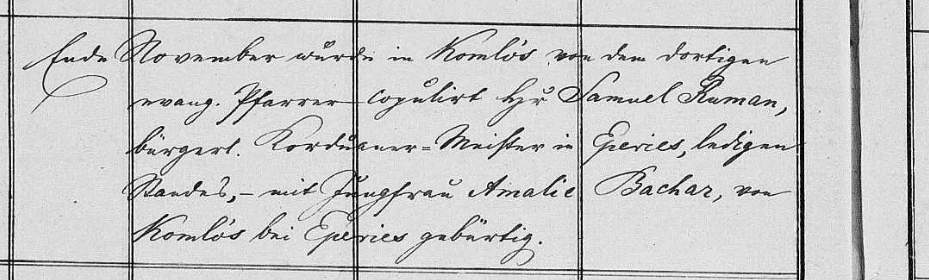 evanjelického farára zosobášený Pán Samuel Ruman,