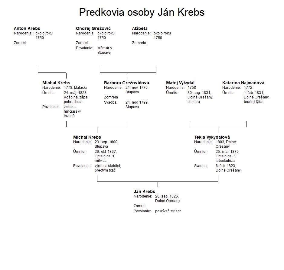 jeden Ján Krebs bol pokrstený 26.9.1826 v Dolných Orešanoch: