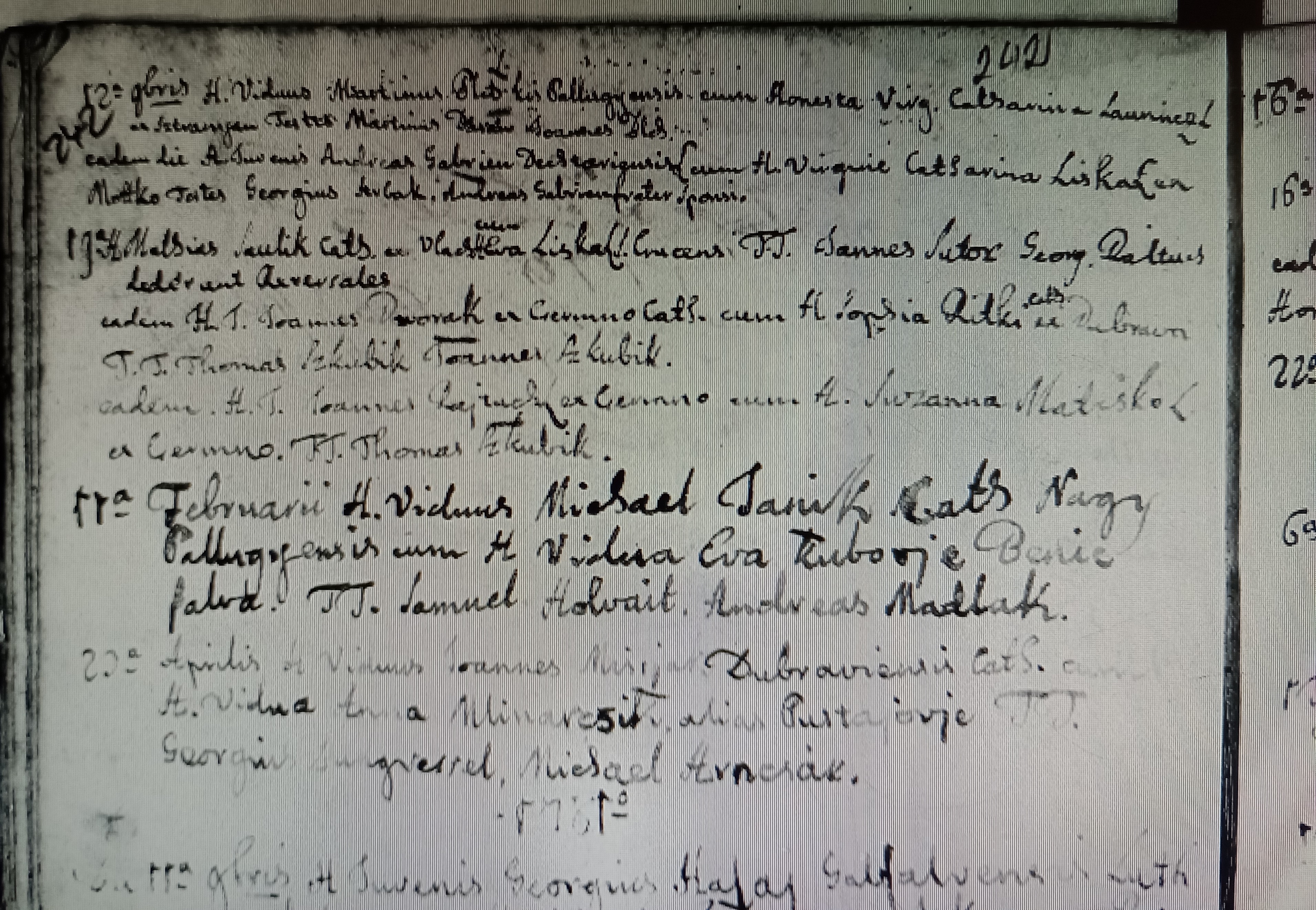 Veľmi pekne ďakujem za ochotu.duros napísal: 13 Jún 2025, 16:57 19a H(onestus) Mathias Saulik Cath(olicus) ex Vlach cum H(onesta) Eva Liska S(ancti) Crucensi T(es)t(es) Joannes Sutor, Georg(ius) D(?)altuch dedirunt Reversales
