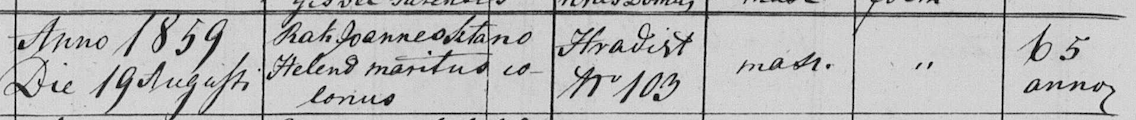 Matrika zomrelých z roku 1859: Ján Rak, manžel Heleny Sztano (+65) - z toho mi vychádza, že sa narodil 1794