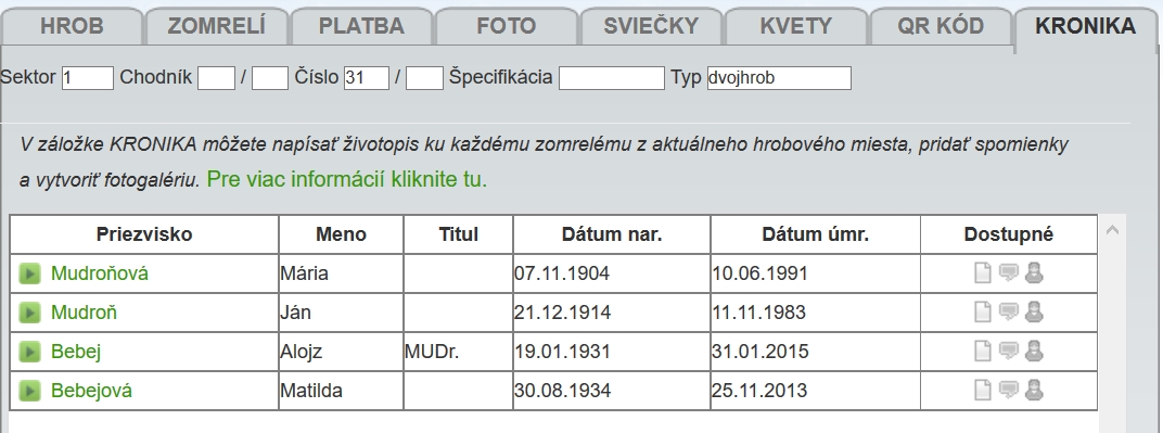 Záznam bude v živej matrike. Ak zomrela povedzme v nemocnici, nemusí byť záznam v mieste bydliska. Skúste sa odraziť od toho, kde sa narodili jej deti. Ten Ján, neviem, či to viete, je pochovaný v Dolnom Kubíne (viď obr.).