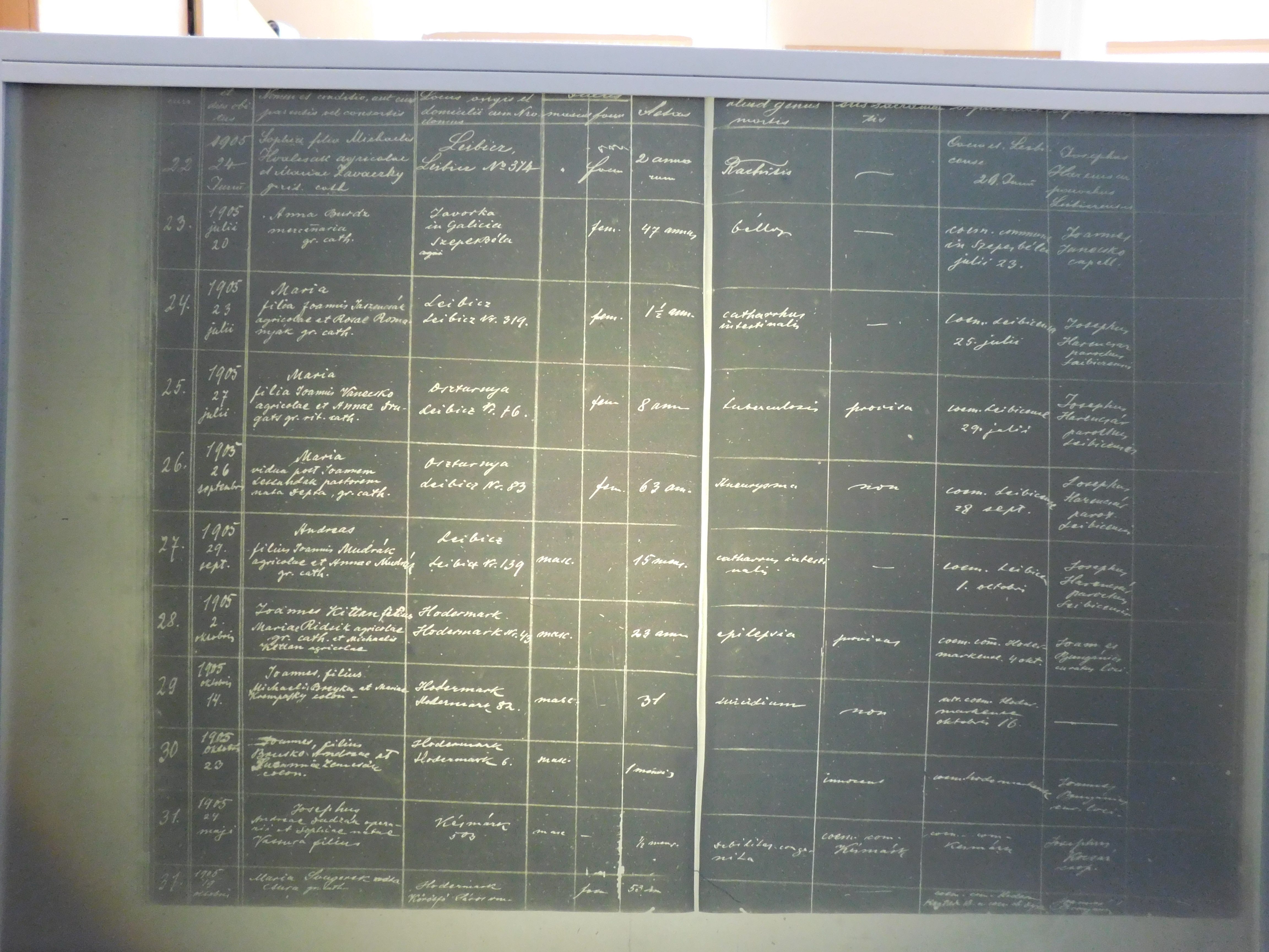 Príčina smrti 1905 Stotince latinčina