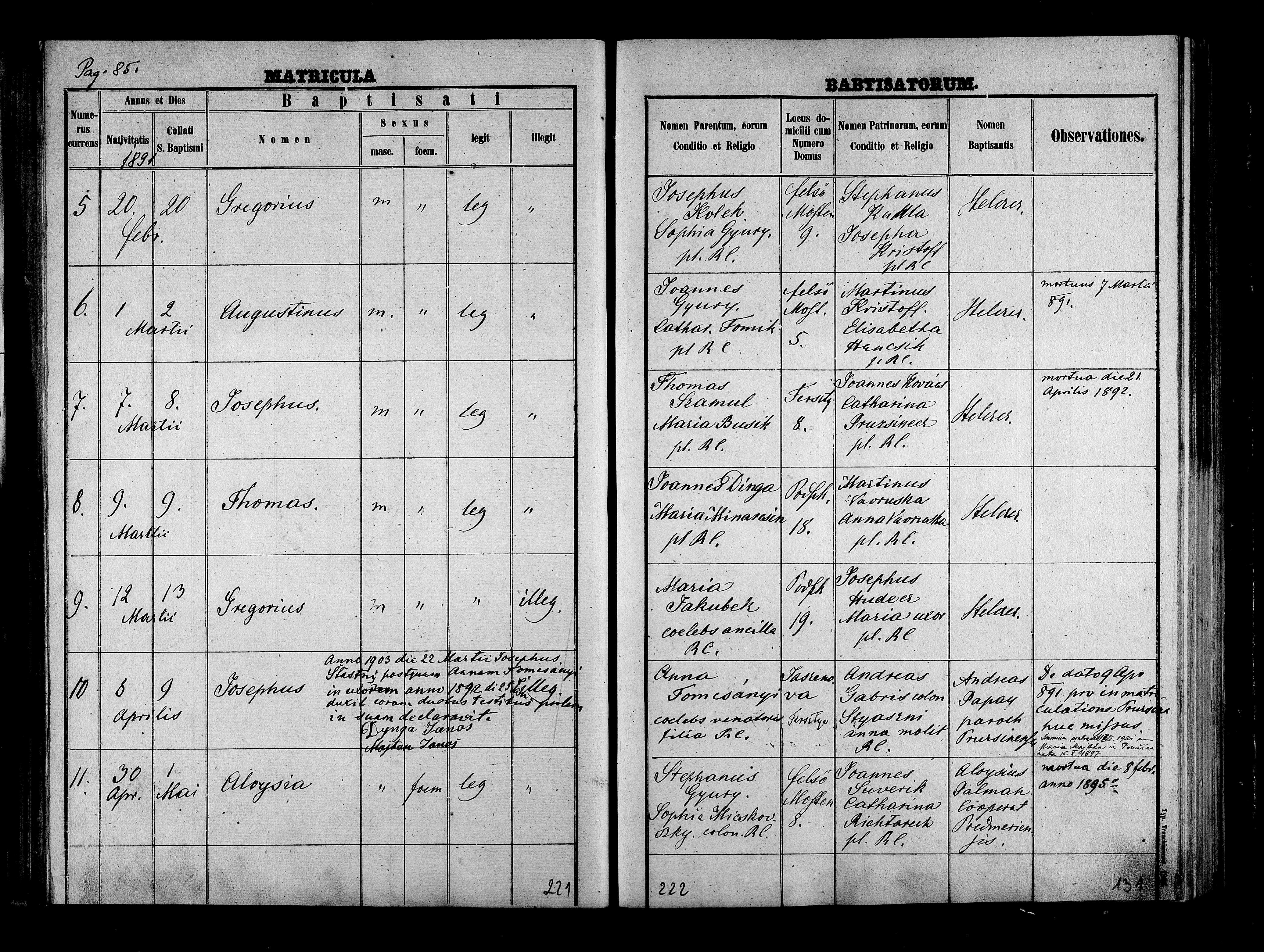 Dňa 9. apríla 1891 bol tento údaj poslaný do Pružiny za účelom uvedenia zápisu do matriky. Zrejme sa tak stalo preto, že dieťa sa narodilo v Jasenovej...