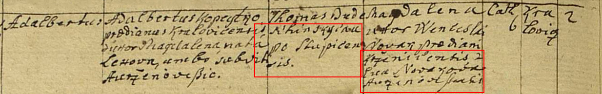 Magdalena Uhor Wenceslai Novak praediani Krženicensis et Evae Novakova Auržinoveßensis - Magdalena Uhor, daugther of Václav Novák from Křenice and Eva Novák from Uhřínevěs.