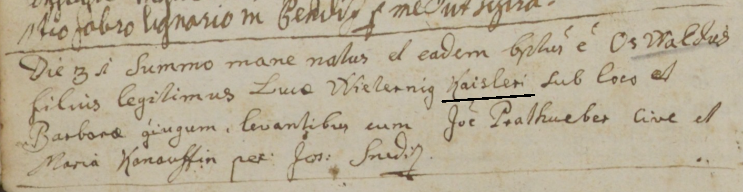 prehľadávam matriky dolného Rakúska (Korutánsko) a pri viacerých menách je uvedené Kayzleri či Kaisleri (niekedy aj kaicheri a pod.). S určitosťou nejde o lokalitu a snáď ani o prídomok (bolo by to moc časté). Pravdepodobne ide o profesiu, povolanie. Žiaľ neviem sa dostať k nejakému výkladu ani v rámci rôznych slovníkov. Ďakujem za pomoc.