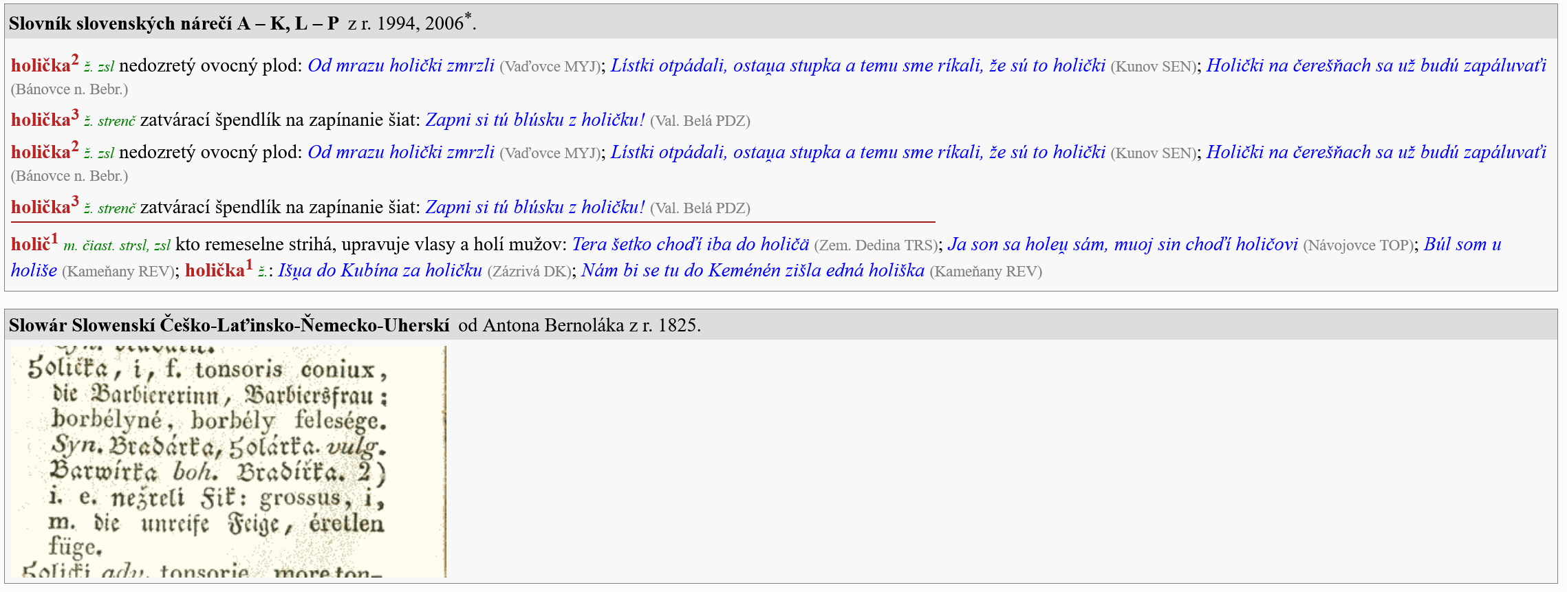 Nemyslím si, že je to od slova holič, ale od nárečového "holička" https://slovnik.juls.savba.sk/?w=holi%C ... cs&d=psken#, uvádza ho aj Bernolákov Slowár...., takže sa používalo v minulosti a tým pádom pôjde o prezývkový typ priezviska vo význame "nezrelý".