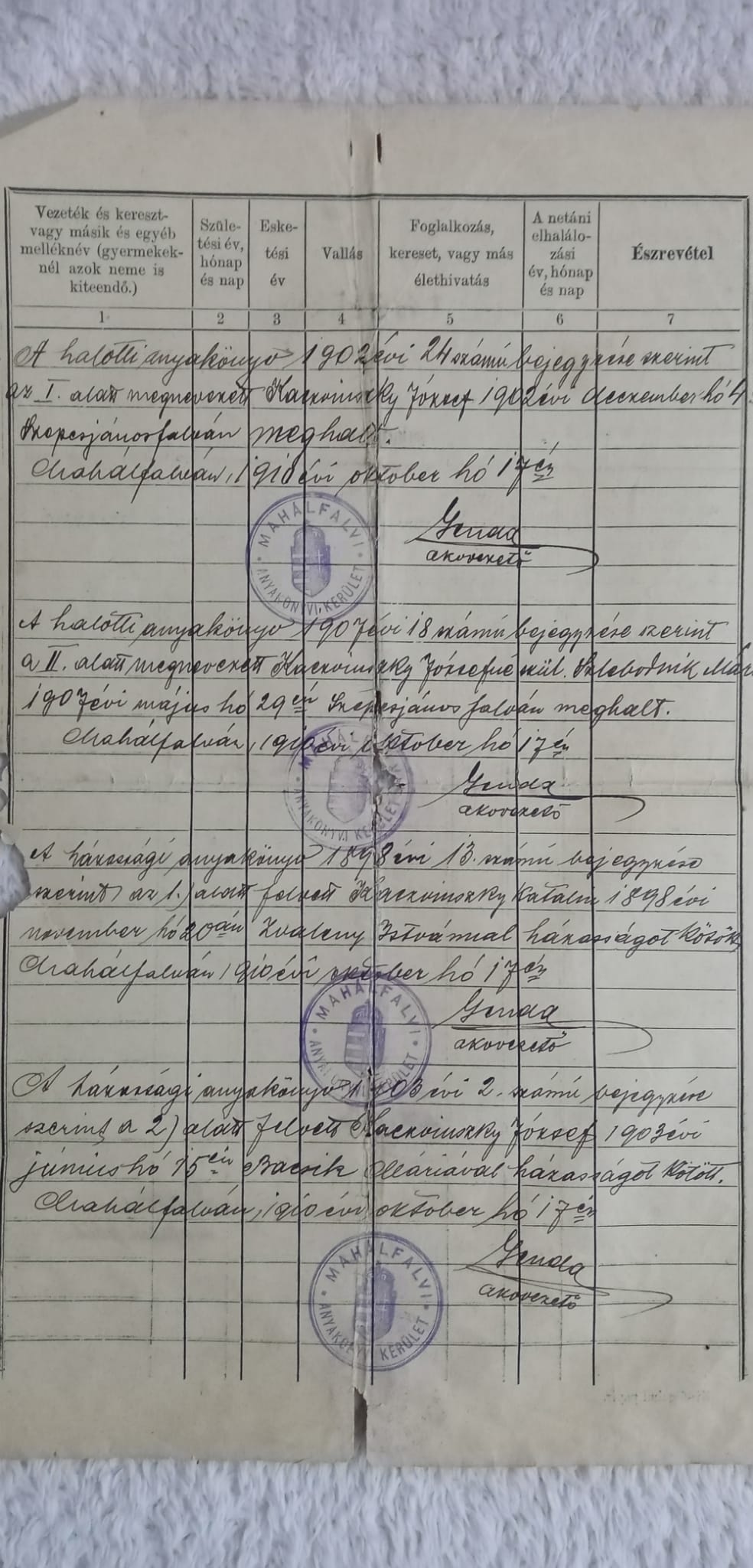 Potvrdenie o úmrtí Jozefa Kacvinského dňa 4.12.1902.