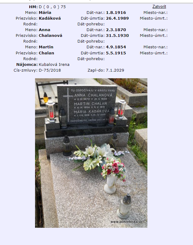 Je pravda, že údaje nahroboch nie sú vždy správne, už sa mi to tiež stalo.... Myslím, že ani dátum narodenia Anny Chalánovej nieje správny...