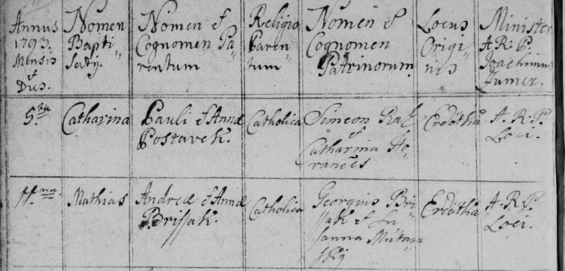 11.?.1793 Mathias, Andrea & Anna Brissak, katolíci, Georgius Brissak & ??? ??? ??? Erdutka ???