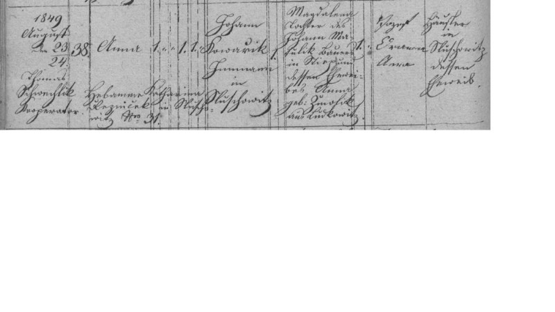 Dobrý deň, prosím o kontrolu správnosti mena, prvý krát som hľadala v českých záznamoch a nie som si istá, či som našla správne - zo slovenskej sobášnej matriky mám údaje - Anna Kowárik, matka Magdalenae Matulik a otec Joannis, miesto narodenia Sluszowitz (Slušovice, Uherské Hradište) 1849. V českej krstnej matrike z obce Slušovice som našla čo je priložené na obrázku. Potrebujem si potvrdiť, že som našla správny krst. Ďakujem