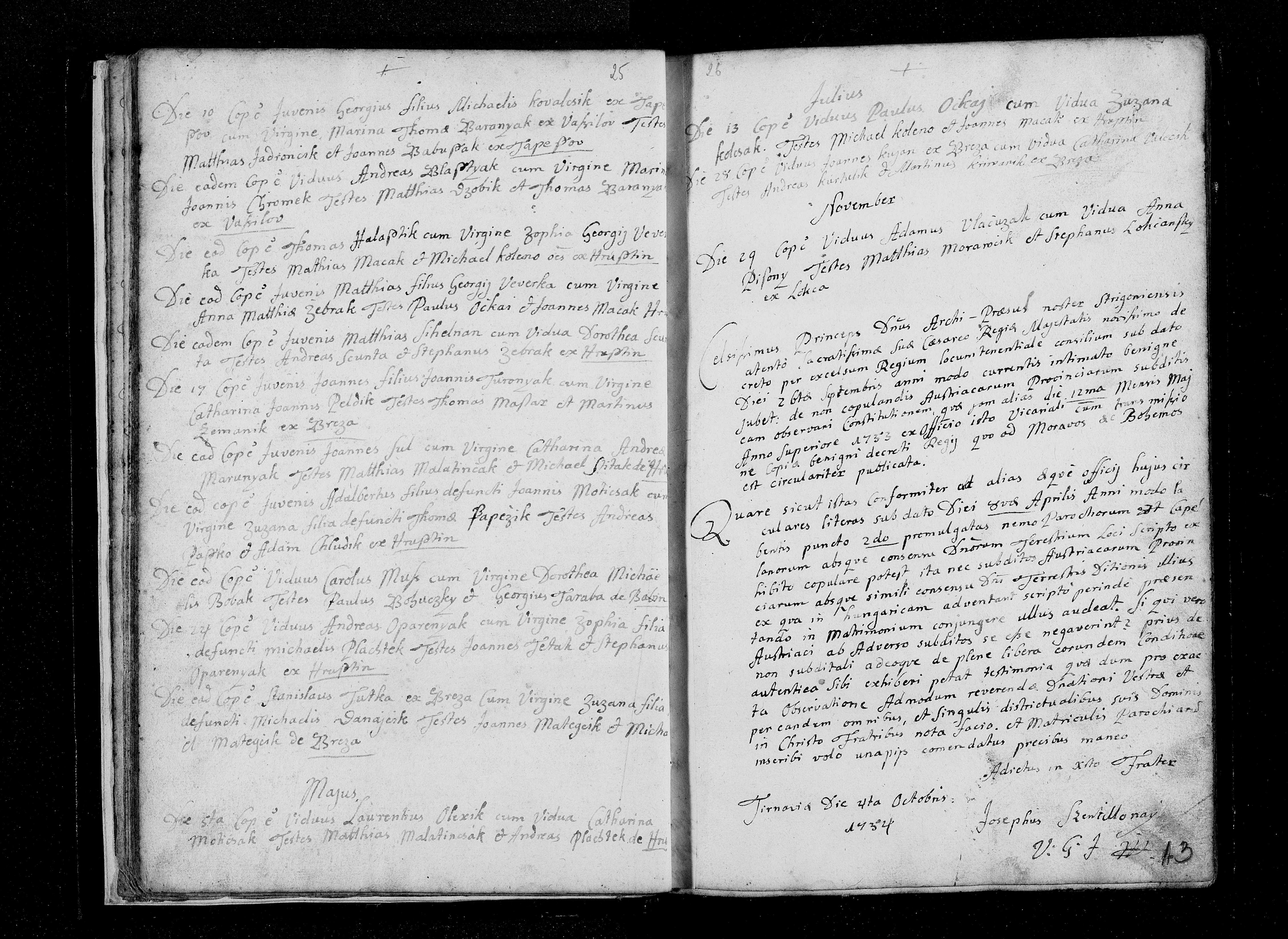 z toho, čo som prečítal, roku 1734 bol vydaný obežník, ktorým ostrihomský arcibiskup s okamžitou platnosťou zakazuje sobášenie akýchkoľvek osôb bez predošlého súhlasu príslušného zemepána. Rovnako sa má podľa obežníka nakladať aj s Rakušanmi, ktorí by sa o sobáš v Uhorsku pokúšali. Musia teda od zemepána v domovskej krajine priniesť listinu dokladujúcu súhlas zemepána so sobášom v Uhorsku. Rovnako tak slobodní občania Rakúsko - Uhorska museli priniesť potvrdenie o slobodnosti.