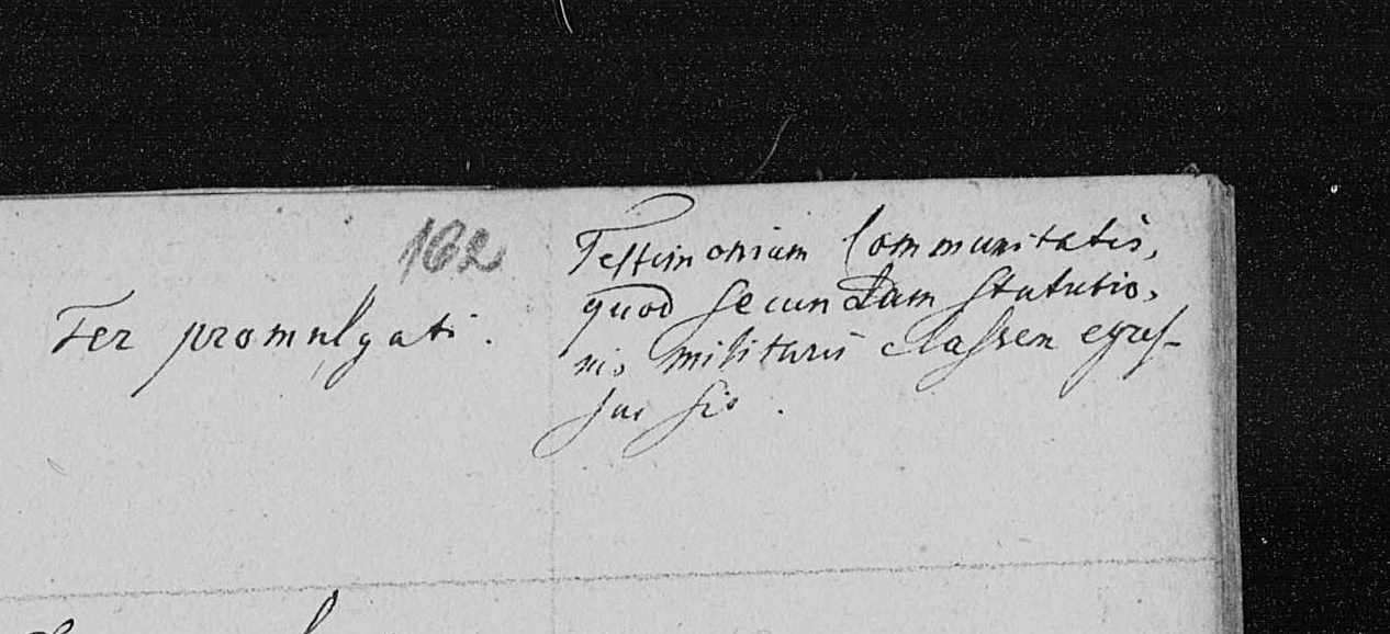 Testimonium Communitatis quod secundam statutionem militarii classem egressus ?fuit?