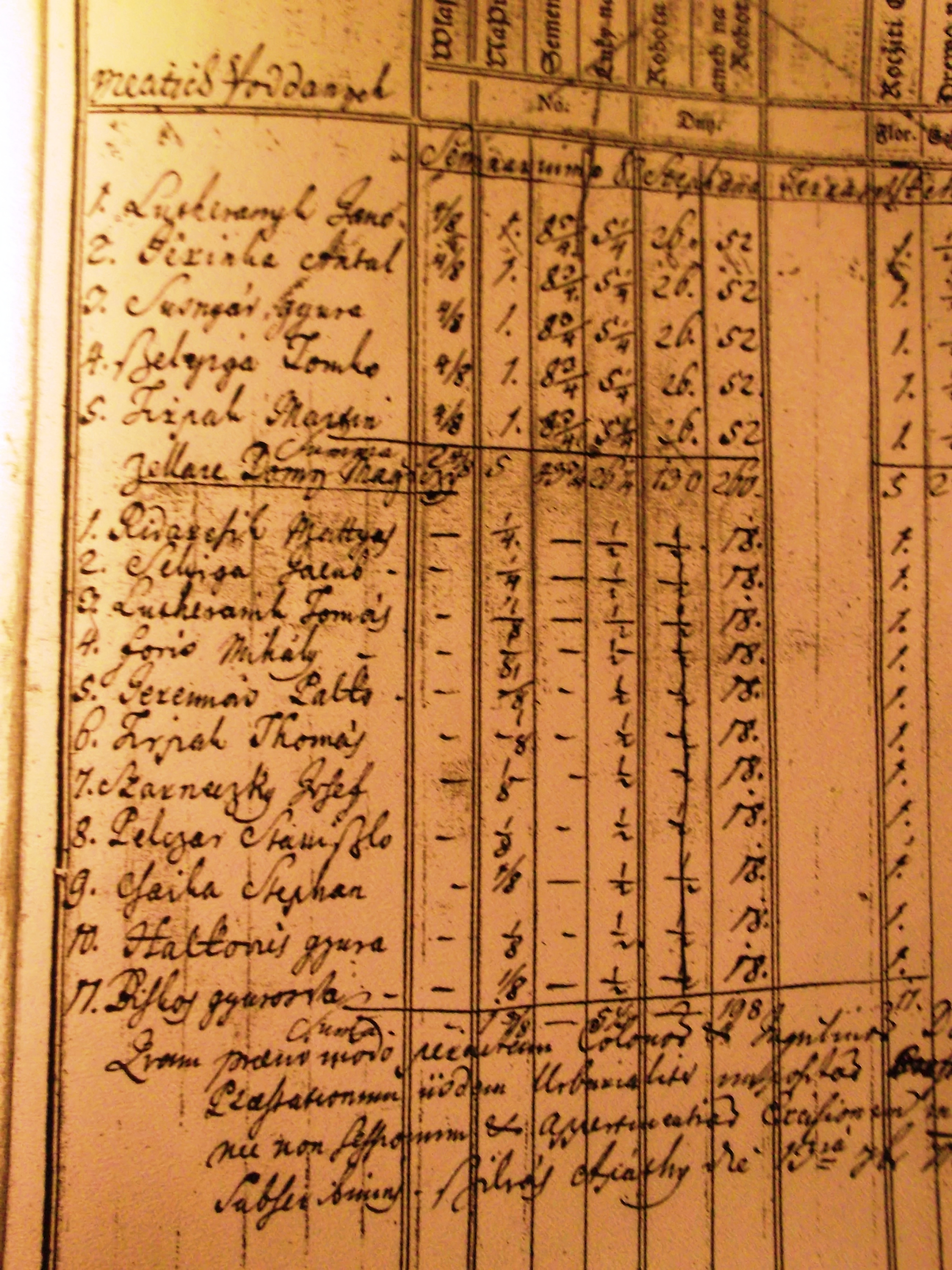 Cely ten elaborat som necital, ale pridavam sa k Patrikovi - je tam Bicskos gyurowa. Zapisovali sa hlavy rodin - teda otcovia, alebo z dospelych najstarsi syn (najstarsi brat). Ak ich nebolo, tak bola zapisana vdova.