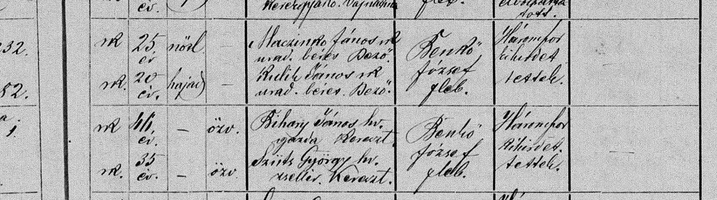 28.02.1858 sa narodil Andreas ako nemanželské dieťa (illeg.) vdove po Jánovi Csermákovi Márii (priezvisko je tam iné, napriek tomu že by malo byť Szabo, resp. Szabolcsik) : https://familysearch.org/ark:/61903/3:1 ... cc=1554443