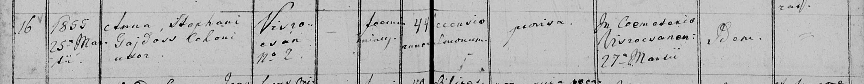 Keďže sa v novembri 1831 Štefan druhý krát oženil ako mladý muž (narodenie zrejme júl 1803 vo Vsočanoch - 28 rokov), jeho prvá žena musela zomrieť krátko pred svadbou, pričom sa znova chcel rýchlo oženiť aby zaopatril deti...v úmrtnej matrike som našiel len tento naozaj skromný záznam o úmrtí Anny Gajdoš k 30. augustu 1831 vo veku 26 rokov : Žiadna iná Anna Gajdoš/Líška/Hliška/Porvan sa v rozumnom rozmedzí 1820 - november 1831 v úmrtnej matrike Vysočian nenachádza. Taktiež som na FS našiel narodenie Anny Porvan ? v prvej polovici mája 1810 (čo sedí k dátumu pri úmrtí) vo Vysočanoch ale znamenalo by to že sa vydývala v 13. rokoch....Otázka je či je možné stotožniť Annu Porvan narodenú v roku 1810, Annu Porvan vydatú za Štefana gajdoša v roku 1823 a Annu Gajdoš zomretú v roku 1831....