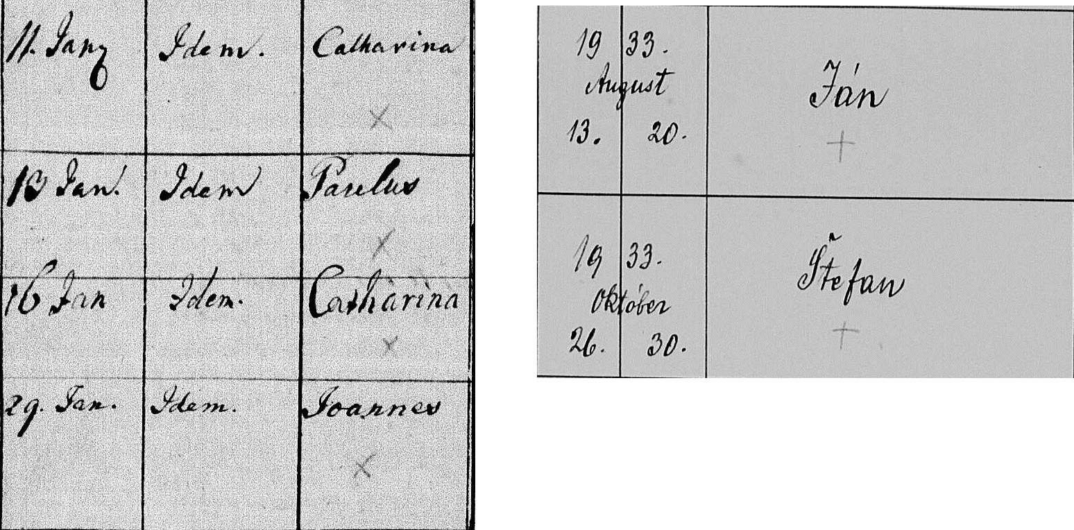 Ten krížik pri Jánovi a Štefanovi asi označujú, že osoby zomreli.